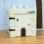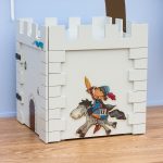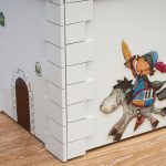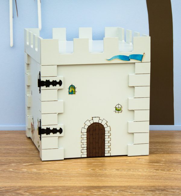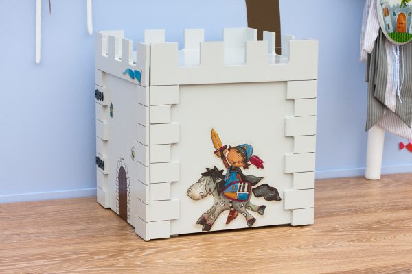 Ξύλινο κουτί (MDF) κάστρο με θέμα τους ιππότες. Μπορεί να χρησιμοποιηθεί από το παιδί σαν παιχνίδι. Στο εσωτερικό του περιέχει αποθηκευτικό χώρο. Διακοσμημένο με την τεχνική του decoupage και άλλες τεχνικές. Χρώμα: Γκρι