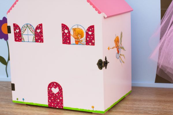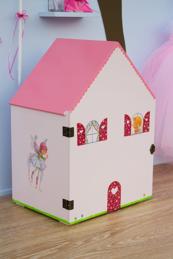 Ξύλινο κουκλόσπιτο (MDF) με νεράιδες, ροζ- φούξια, διακοσμημένο με την τεχνική του decoupage και άλλες τεχνικές.